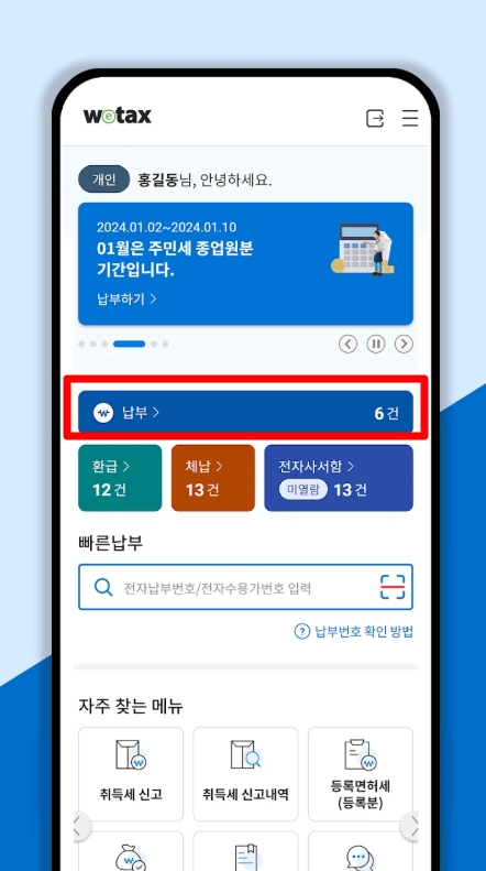 ✔️ 스마트 위택스 앱: 홈페이지 외에도 핸드폰의 '스마트 위택스 앱'을 통해 간편하게 납부를 할 수 있습니다.