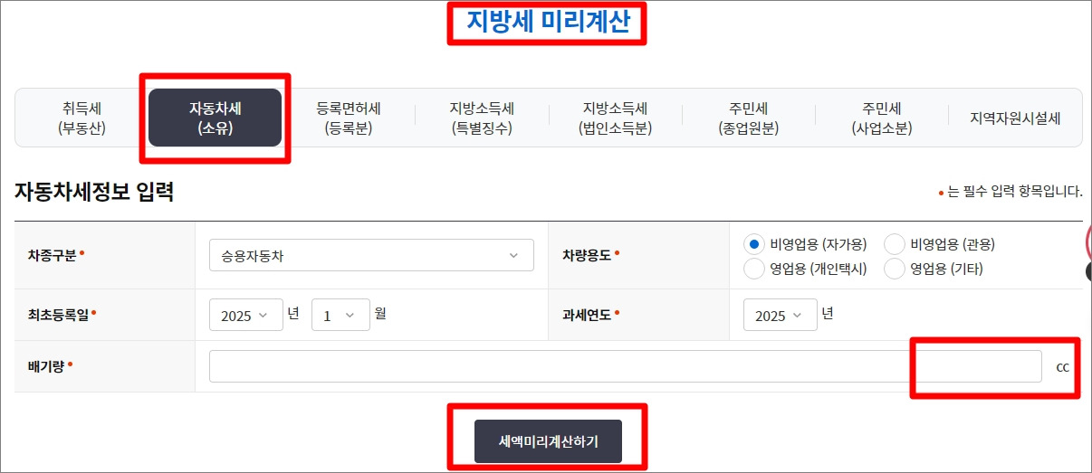 ⬆️ 자동차세를 얼마나 내야하는지 알고 싶으세요? 간단합니당. 링크를 통해 이동한 후 [지방세 미리계산] 페이지에서 [자동차세(소유)]탭을 선택하여 관련 정보 입력 후 [세액미리계산하기] 누르면 바로 확인 가능합니다. ⬆️